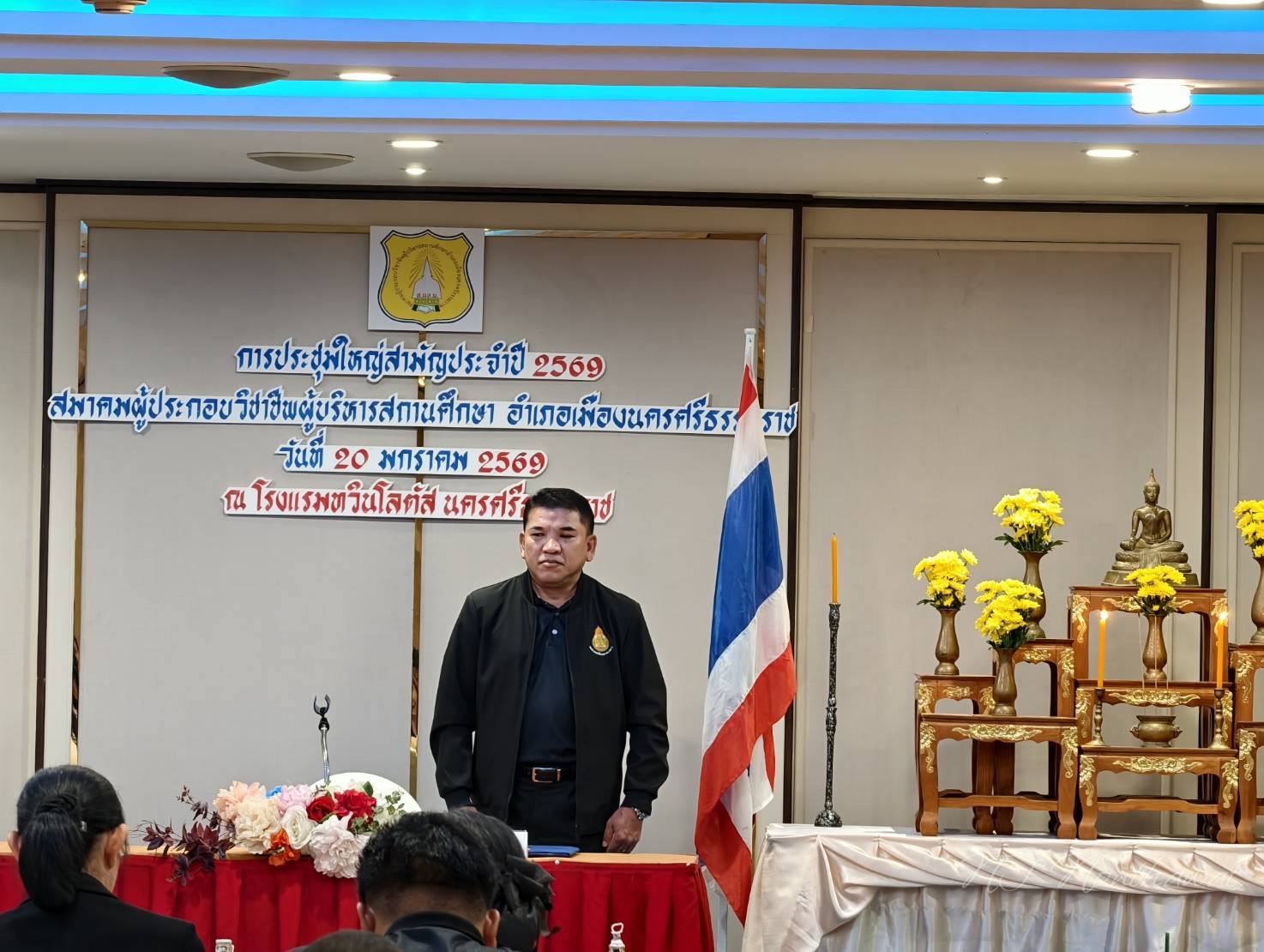 นายอำนาจ สุทิน ผู้อำนวยการสำนักงานเขตพื้นที่การศึกษาประถมศึกษานครศรีธรรมราช เขต 1 ให้เกียรติเป็นประธานการประชุมใหญ่สามัญประจำปี 2569 ของสมาคมผู้ประกอบวิชาชีพผู้บริหารสถานศึกษาอำเภอเมืองนครศรีธรรมราช ณ ห้องประชุมปทุมลาภ โรงแรมทวินโลตัส อำเภอเมืองนครศรีธรรมราช จังหวัดนครศรีธรรมราช