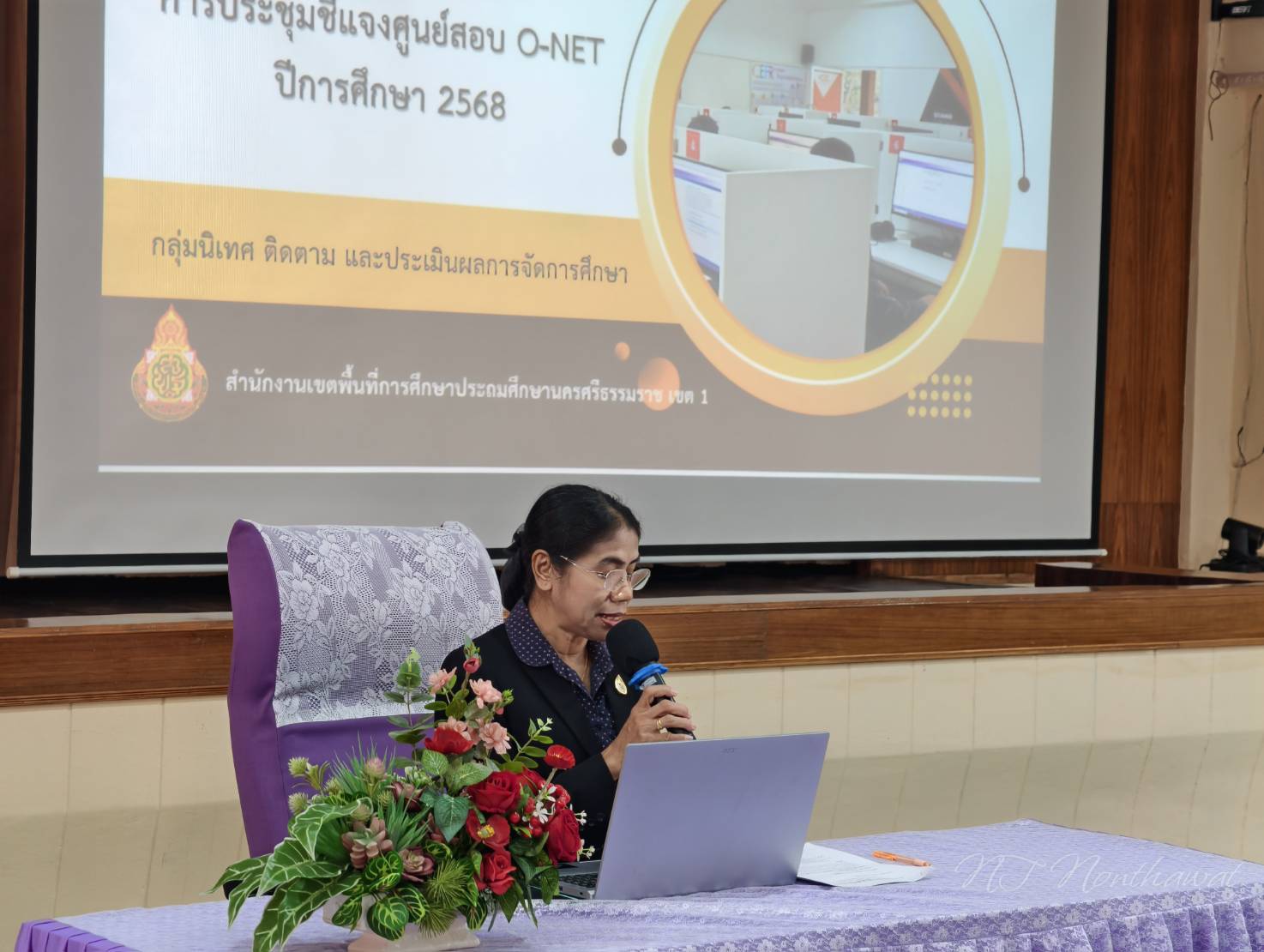 จากนั้น เวลา 13.30 น. นายอำนาจ สุทิน ผู้อำนวยการสำนักงานเขตพื้นที่การศึกษาประถมศึกษานครศรีธรรมราช เขต 1 เป็นประธานการประชุมคณะทำงานตัวแทนศูนย์สอบประจำสนามสอบการทดสอบทางการศึกษาระดับชาติขั้นพื้นฐาน (O-NET) ระดับชั้นประถมศึกษาปีที่ 6 และชั้นมัธยมศึกษาปีที่ 3 ด้วยระบบดิจิทัล (Digital Testing) ปีการศึกษา 2568 โดยมอบหมายให้นางฐิตารีย์ บ้างสกุลวิวัฒน์ ศึกษานิเทศก์ชำนาญการพิเศษ ชี้แจงแนวทางและขั้นตอนการดำเนินงาน เพื่อให้การจัดสอบเป็นไปด้วยความเรียบร้อย โปร่งใส ยุติธรรม และสอดคล้องกับแนวทางและมาตรฐานการทดสอบทางการศึกษาแห่งชาติของสถาบันทดสอบทางการศึกษาแห่งชาติ (องค์การมหาชน)