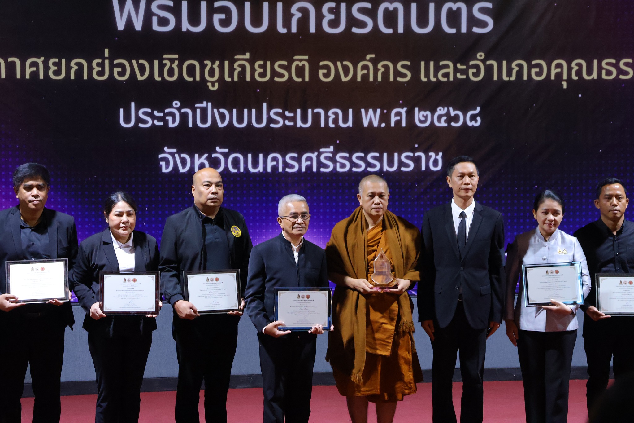 ในการนี้ มีสถานศึกษาในสังกัดสำนักงานเขตพื้นที่การศึกษาประถมศึกษานครศรีธรรมราช เขต 1 เข้าร่วมพิธีและได้รับการยกย่องเชิดชูเกียรติเป็นองค์กรคุณธรรม ประจำปีงบประมาณ พ.ศ. 2568 แบ่งเป็นประเภทองค์กรคุณธรรม ระดับพัฒนาคุณธรรม ได้แก่ โรงเรียนบ้านมะม่วงทอง ประเภทองค์กรคุณธรรม ระดับต้นแบบ ได้แก่ โรงเรียนวัดโดน โรงเรียนวัดมะม่วงทอง โรงเรียนวัดนางพระยา โรงเรียนวัดสระแก้ว โรงเรียนวัดโพธิ์เสด็จ โรงเรียนวัดทุ่งแย้ โรงเรียนบ้านบางกระบือ โรงเรียนราชประชานุเคราะห์ ๔ โรงเรียนบ้านคลองดิน โรงเรียนราชประชานุเคราะห์ ๕ โรงเรียนบ้านเนิน โรงเรียนวัดท่างาม โรงเรียนชุมชนลานสกา โรงเรียนวัดสอ โรงเรียนวัดจันทร์ โรงเรียนบ้านสันยูง โรงเรียนบ้านไสใหญ่ โรงเรียนวัดกัด โรงเรียนบ้านห้วยยูง โรงเรียนบ้านห้วยระย้า โรงเรียนวัดทุ่งเฟื้อ และโรงเรียนราษฎร์บำรุง