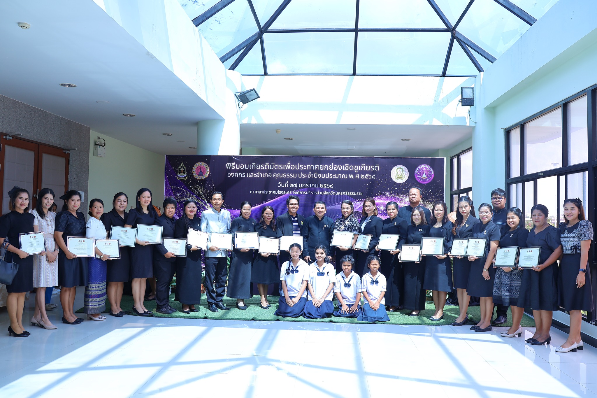 วันอังคารที่ 27 มกราคม พ.ศ. 2569 นายอำนาจ สุทิน ผู้อำนวยการสำนักงานเขตพื้นที่การศึกษาประถมศึกษานครศรีธรรมราช เขต 1 ร่วมพิธีมอบเกียรติบัตรเพื่อประกาศยกย่องเชิดชูเกียรติองค์กรและอำเภอคุณธรรม และพิธีมอบโล่เชิดชูเกียรติ “วัฒนคุณาธร” ประจำปีงบประมาณ พ.ศ. 2568 ณ ศาลาประชาคมโรงละคร องค์การบริหารส่วนจังหวัดนครศรีธรรมราช (ชั้น 3) โดยมีนายวิทยา เขียวรอด รองผู้ว่าราชการจังหวัดนครศรีธรรมราช เป็นประธานในพิธี