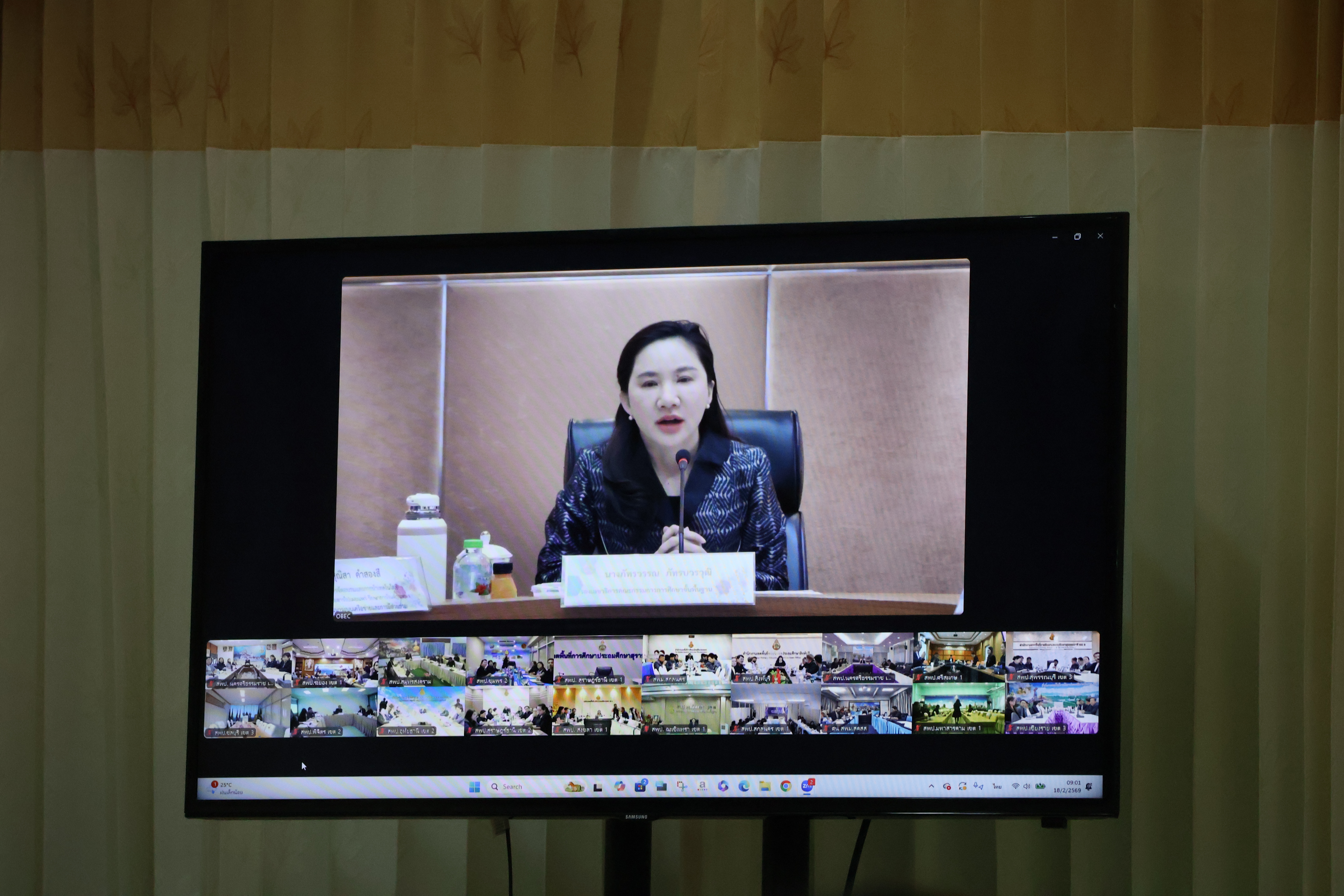 วันพุธที่ 18 กุมภาพันธ์ พ.ศ. 2569 นายอำนาจ สุทิน ผู้อำนวยการสำนักงานเขตพื้นที่การศึกษาประถมศึกษานครศรีธรรมราช เขต 1 พร้อมด้วยคณะกรรมการติดตาม ตรวจสอบ ประเมินผล และนิเทศการศึกษา (ก.ต.ป.น.) ของเขตพื้นที่ เข้าร่วมการประชุมพัฒนาศักยภาพการจัดการศึกษาแบบมีส่วนร่วมของคณะกรรมการ ก.ต.ป.น. ผ่านระบบ Zoom Meeting ณ ห้องประชุมอาคาร 1 สำนักงานเขตพื้นที่การศึกษาประถมศึกษานครศรีธรรมราช เขต 1 โดยมีนางภัทรวรรณ ภัทรบวรวุฒิ รองเลขาธิการคณะกรรมการการศึกษาขั้นพื้นฐาน เป็นประธานในพิธีเปิด พร้อมบรรยายพิเศษเกี่ยวกับแนวทางการขับเคลื่อนการนิเทศ ติดตาม และประเมินผลการจัดการศึกษาอย่างมีประสิทธิภาพ โปร่งใส และยึดหลักการมีส่วนร่วมของทุกภาคส่วน