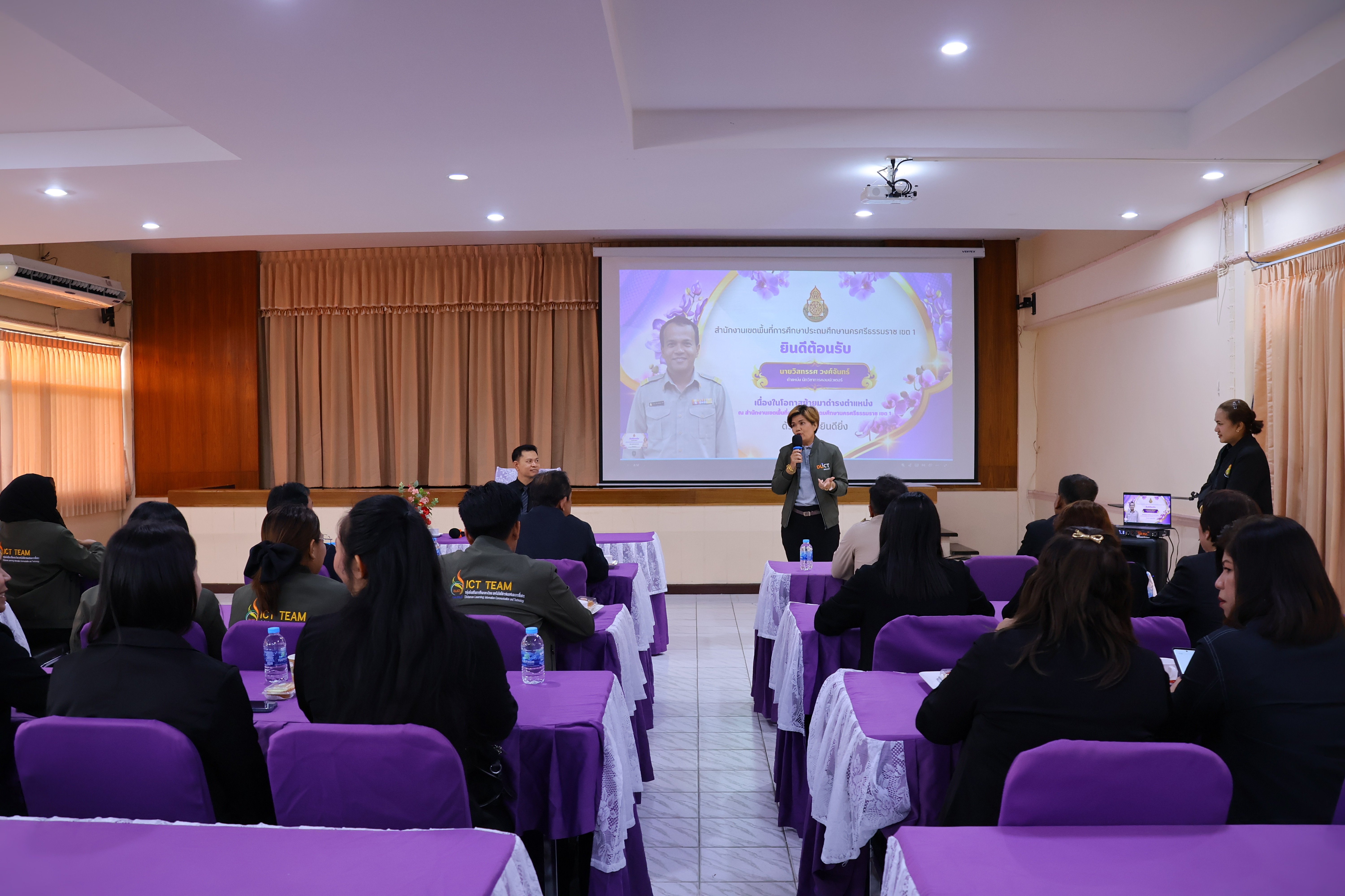 ในโอกาสเดียวกันนี้ ได้ร่วมต้อนรับนายวิสทรรศ วงศ์จันทร์ เนื่องในโอกาสย้ายมาดำรงตำแหน่งนักวิชาการคอมพิวเตอร์ ณ สำนักงานเขตพื้นที่การศึกษาประถมศึกษานครศรีธรรมราช เขต 1 เพื่อร่วมขับเคลื่อนงานด้านเทคโนโลยีสารสนเทศของสำนักงานเขตพื้นที่การศึกษาต่อไป